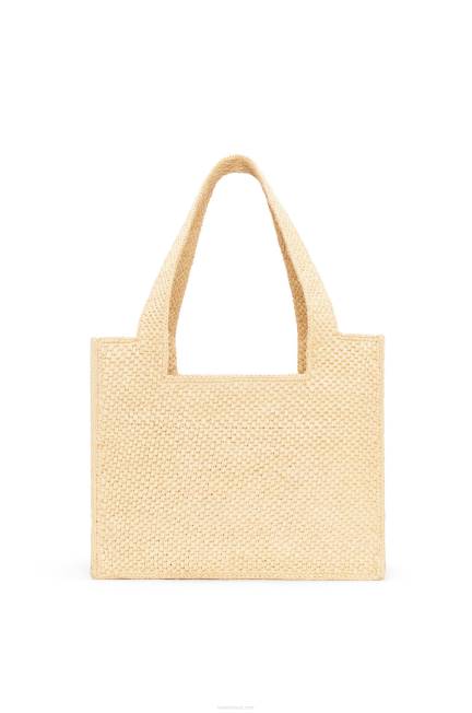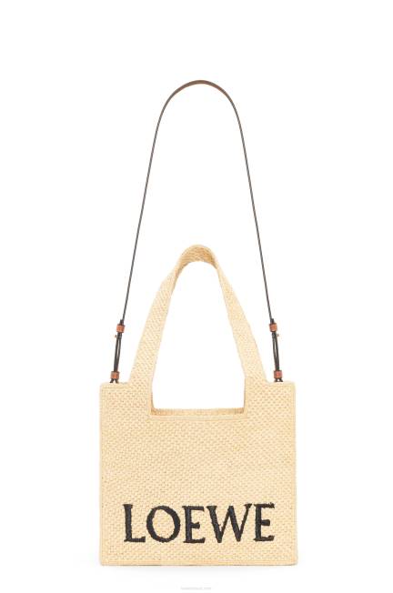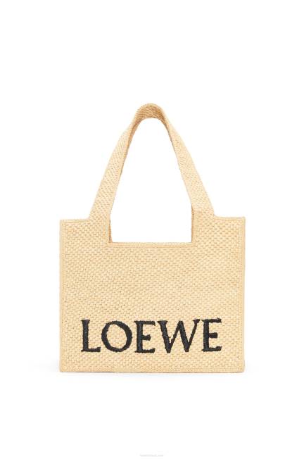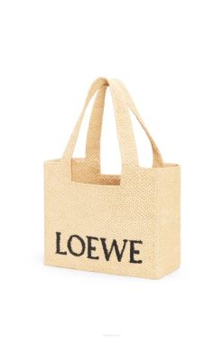 a bolsa loewe font é uma bolsa em forma de cubo, tecida inteiramente em ráfia com uma assinatura loewe contrastante. esta é uma versão média.