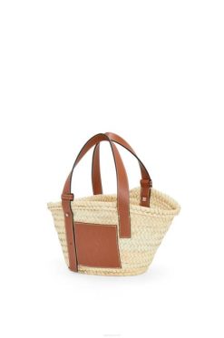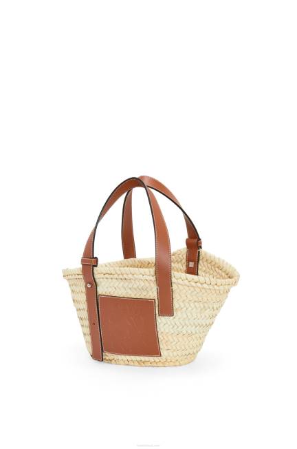 uma cesta tradicional elevada com um corpo clássico tecido à mão e alças superiores de couro de bezerro. esta versão pequena é confeccionada em folha de palmeira e couro de bezerro.