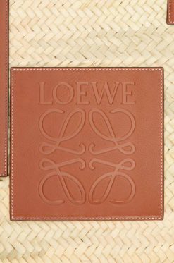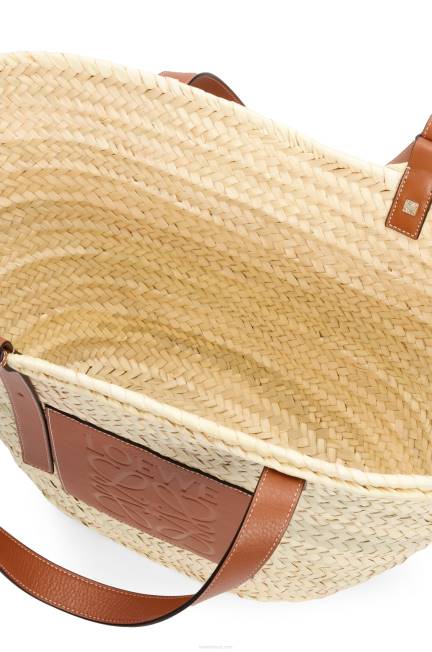 uma cesta tradicional elevada com um corpo clássico tecido à mão e alças superiores de couro de bezerro. esta versão grande é confeccionada em folha de palmeira e couro de bezerro.