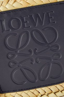 natural/oceano 80ZJ81 mulheres sacolinha em folha de palmeira e couro de bezerro Loewe
