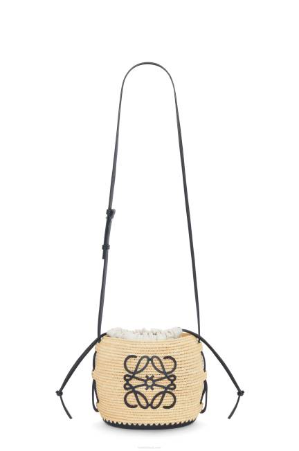 natural/preto 80ZJ24 mulheres bolsa bucket com cordão em folha de palmeira e couro de bezerro Loewe