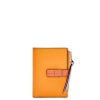 carteira fina dobrável em couro de bezerro granulado macio em cores contrastantes.