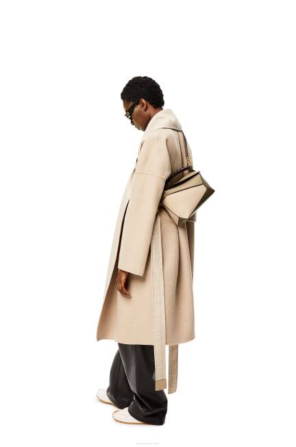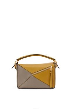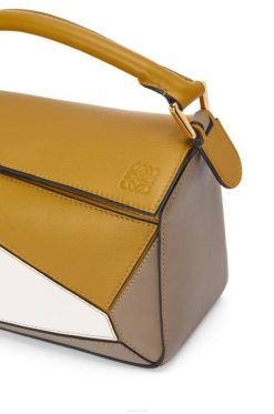 ocre/branco suave 80ZJ497 mulheres bolsa pequena quebra-cabeça em couro de bezerro clássico Loewe