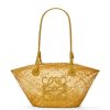 a bolsa com fenda é uma bolsa versátil com alças superiores e corpo em ráfia macia tecida à mão. esta versão mini tem uma alça de ombro loewe jacquard.