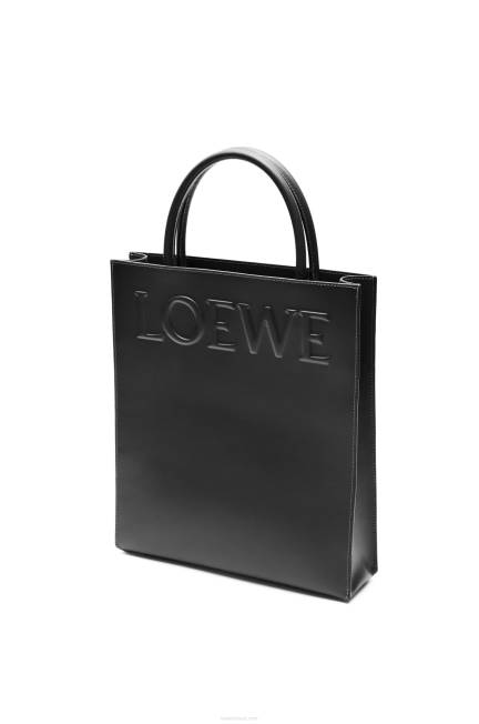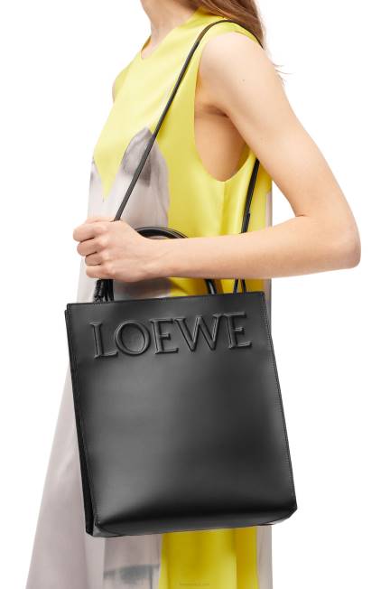 a sacola padrão loewe é uma bolsa prática com uma construção de envelope na base e pode ser carregada por alças superiores ou usando a alça de ombro destacável. esta versão é confeccionada em couro de bezerro elegante e tem um logotipo Loewe gravado na frente.