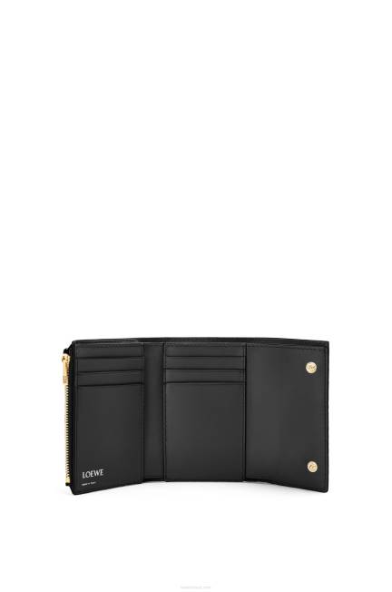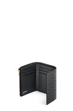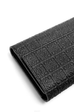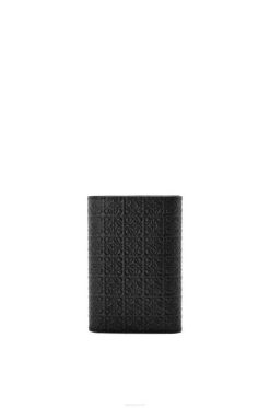 preto 80ZJ1276 mulheres carteira pequena vertical repetitiva em couro de bezerro de seda com relevo Loewe
