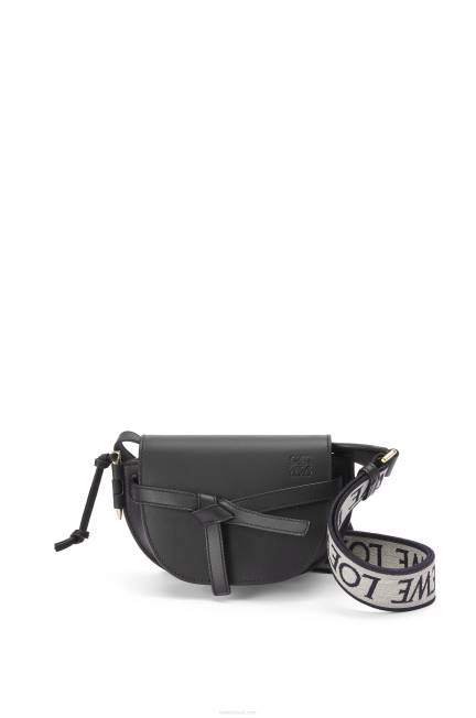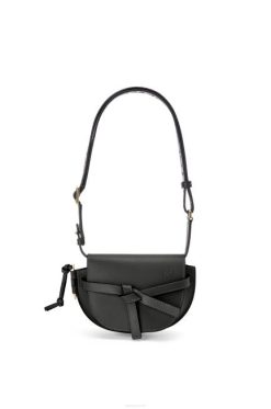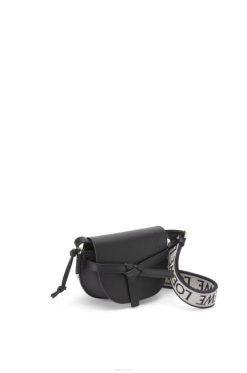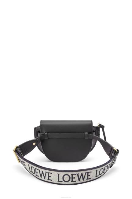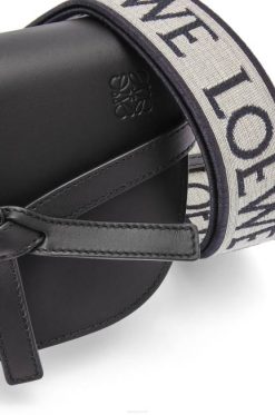 preto 80ZJ197 mulheres bolsa dupla mini gate em couro de bezerro macio e jacquard Loewe