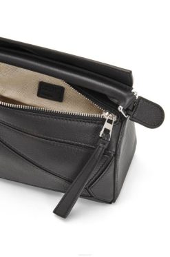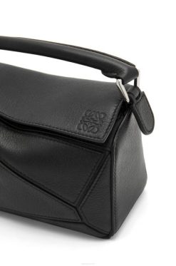 preto 80ZJ200 mulheres bolsa mini quebra-cabeça em couro de bezerro clássico Loewe