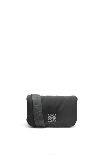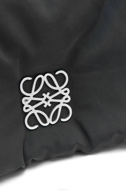inspirado na estética goya e nos principais detalhes, o mini puffer goya traz uma nova dimensão sensorial e tátil, enfatizada pelo enchimento de penas de ganso em uma versão compacta. esta versão é confeccionada em nylon e vem com uma alça de ombro destacável loewe webbing.