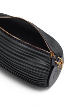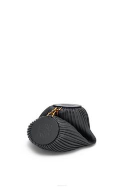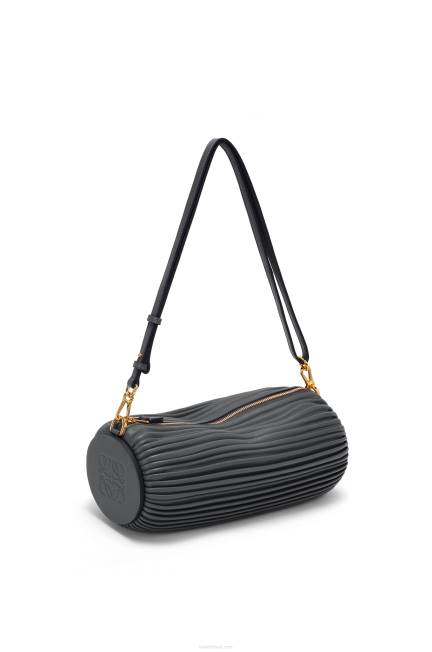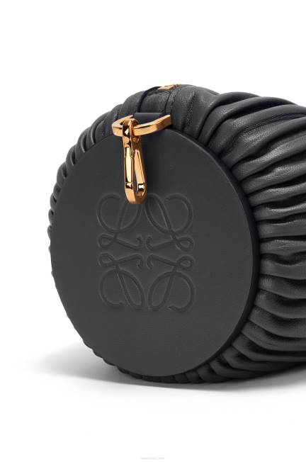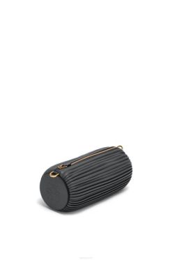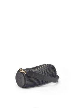 uma bolsa tubular versátil em pele de cordeiro napa plissada que se transforma em pulseira. acabamento com placas de pele de cordeiro em relevo em cada extremidade.