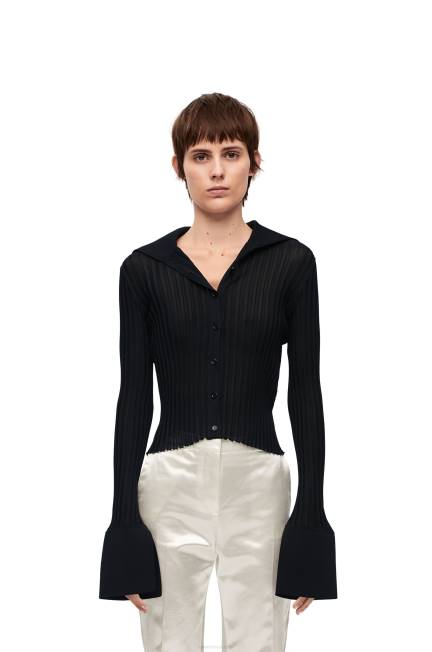 cardigan confeccionado em malha leve de viscose com nervuras.