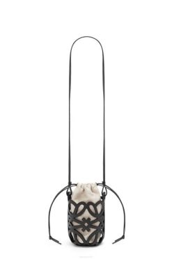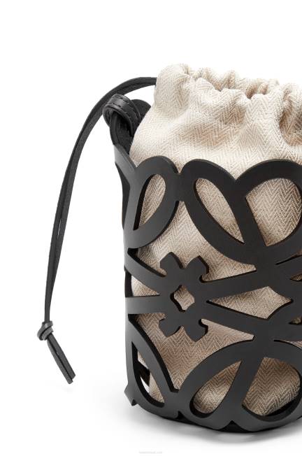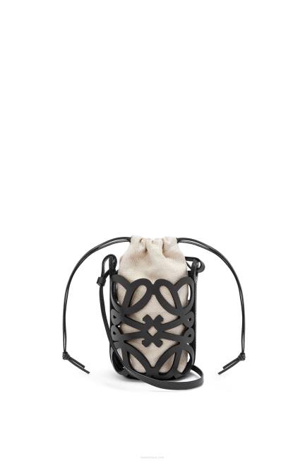 branco/cru 80ZJ558 mulheres Bolso recortado em anagrama em clássico couro de bezerro e lona Loewe