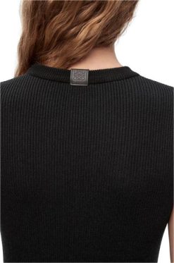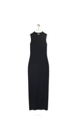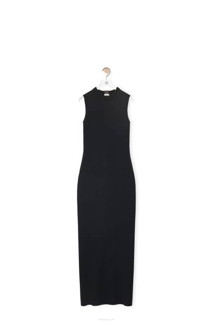 vestido maxi regata em malha de lã com gola careca e fenda em um dos lados.