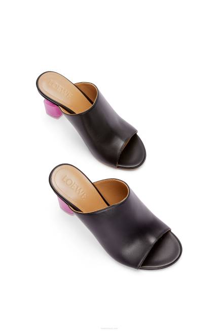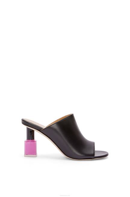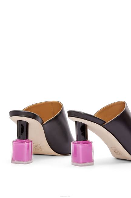 Mule open toe em couro de bezerro com salto em verniz objets trouves.