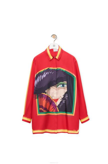 Camisa de seda com abotoamento frontal e estampa bruxa dos resíduos e faixa contrastante na gola, mangas, punhos e bainha.Esta camisa faz parte da coleção cápsula do castelo em movimento da loewe x howl.