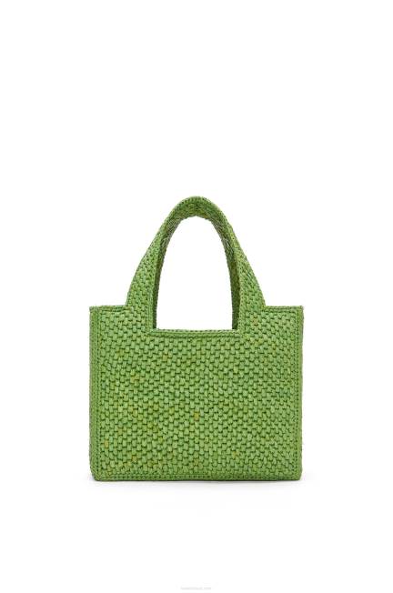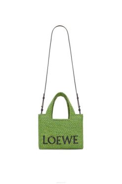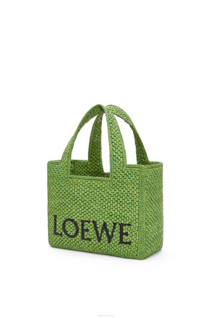 a bolsa loewe font é uma bolsa em forma de cubo, tecida inteiramente em ráfia com uma assinatura loewe contrastante. esta é uma versão pequena.