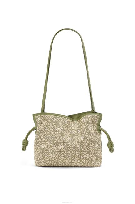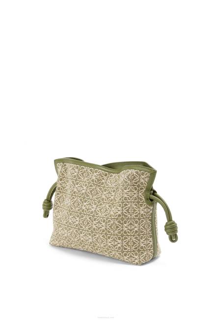 lançada na década de 1970, a clutch flamenca fecha com puxadores de cordão com acabamento em nós enrolados característicos. esta mini versão é confeccionada em couro de bezerro e lona jacquard em um padrão de anagrama repetido.