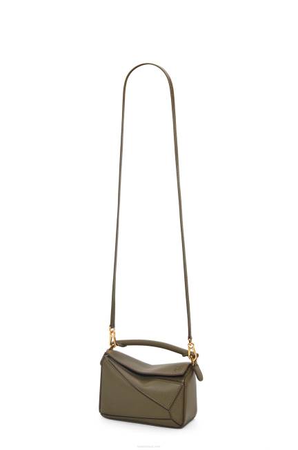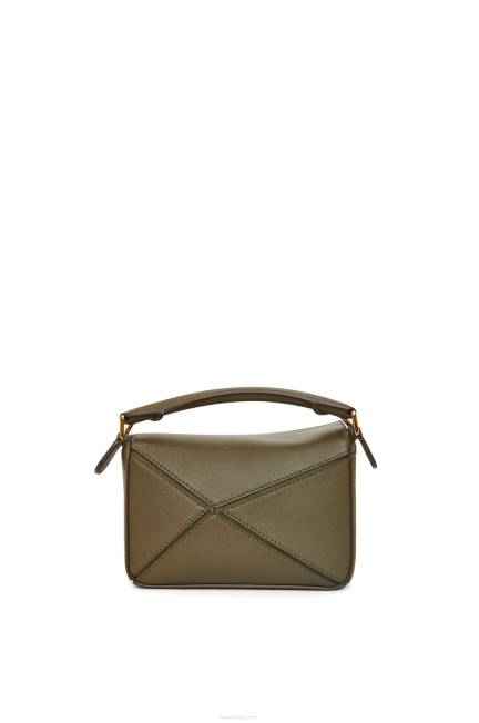 verde caqui escuro 80ZJ202 mulheres bolsa mini quebra-cabeça em couro de bezerro clássico Loewe
