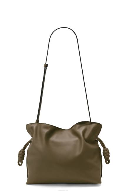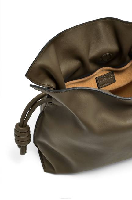 verde caqui escuro 80ZJ359 mulheres clutch flamenca em couro de bezerro nappa Loewe