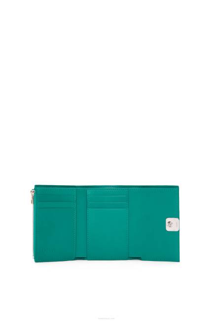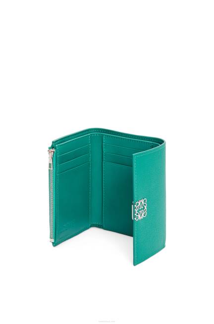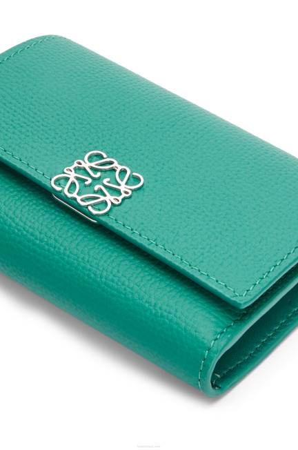 cinza pérola 80ZJ1206 mulheres Carteira com três dobras anagrama em couro de bezerro granulado Loewe