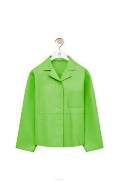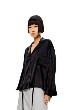 camisa de pijama em pele de cordeiro napa de cetim leve com lapelas, fecho de botão de pressão e um bolso de remendo de anagrama gravado.