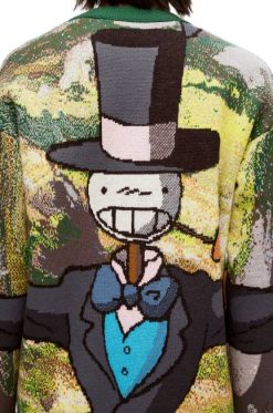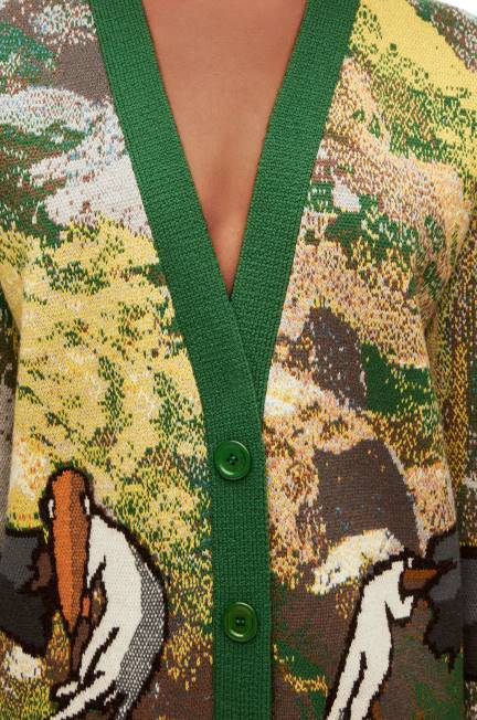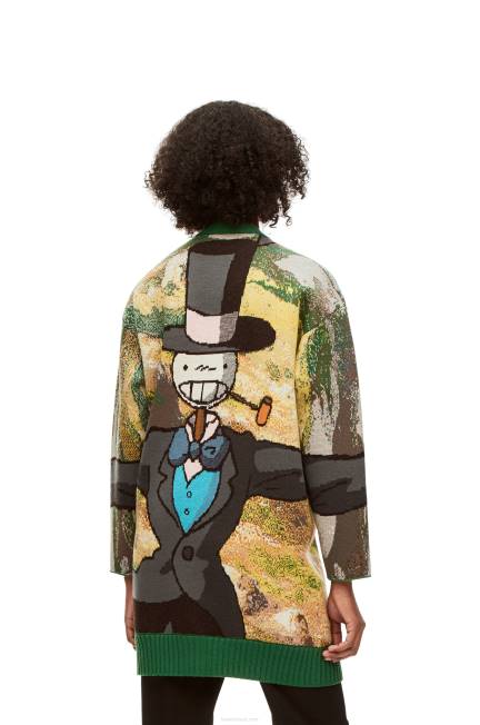 Cardigan com decote em V em lã de peso médio com cabeça de nabo em jacquard e bainha canelada em contraste. este cardigã faz parte da coleção cápsula do castelo em movimento da loewe x howl.