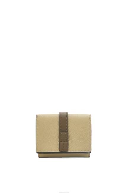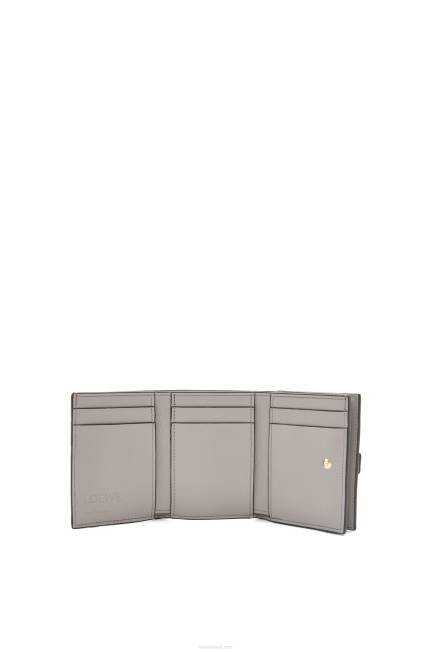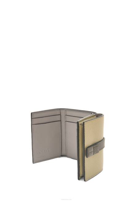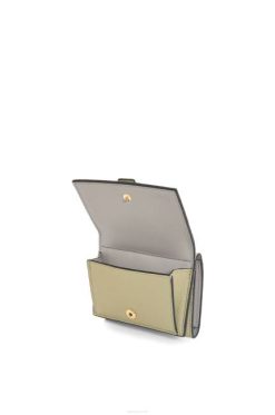 verde sage/verde caqui escuro 80ZJ1209 mulheres carteira com três dobras em couro de bezerro granulado macio Loewe