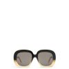 óculos de sol meia-lua quadrados em acetato com assinatura loewe no braço.