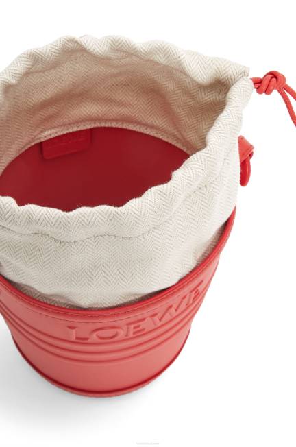 uma bucket bag confeccionada em couro de bezerro e com base no formato de um balde de jardineiro com assinatura loewe em relevo e cordão na parte superior em lona de algodão espinha de peixe.